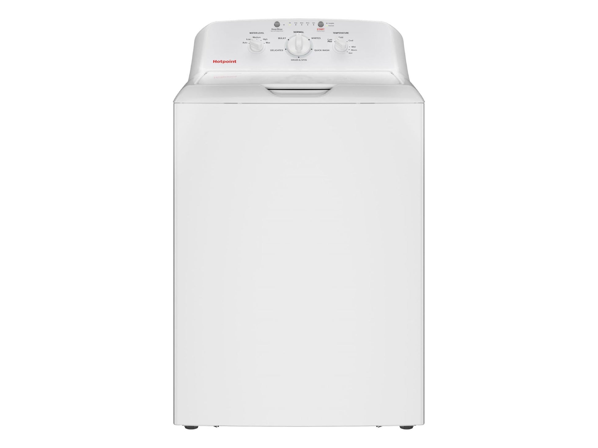 HOTPOINT 4.0 Cubic Foot Top Load Washer with Stainless Steel Basket, Water Level Control, LED Cycle Status Lights, 7 Wash Cycles, Heavy Duty Agitator, Color: White