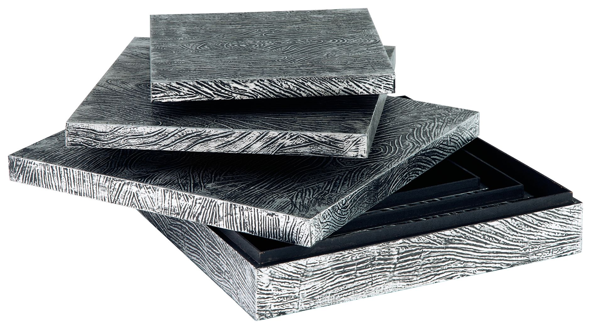 Ideal for a dresser, chest or accent table, this set of three wood and metal boxes is a contemporary choice for the forward-thinking modernist.